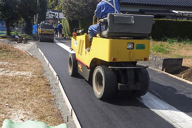 人や車が安全に通行できるよう、道路などの地盤面にアスファルトやコンクリートを敷き固める工事を行います。